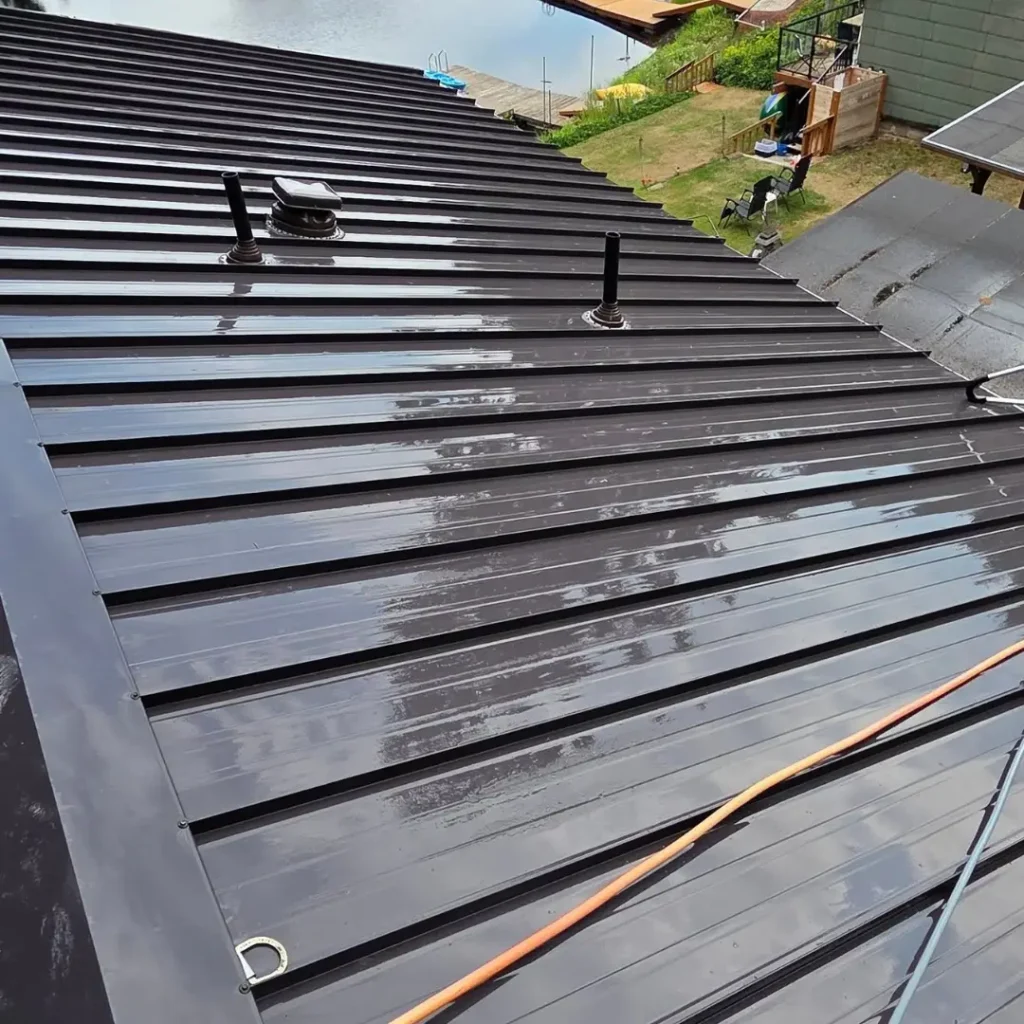 After treatment, the moss will turn white or brown, indicating it is dead. Over the following weeks, nature does the rest of the work. The rain and wind will naturally break down the brittle debris and wash it off your roof. This “natural rinse” allows us to clear the roof without aggressive mechanical scrubbing.